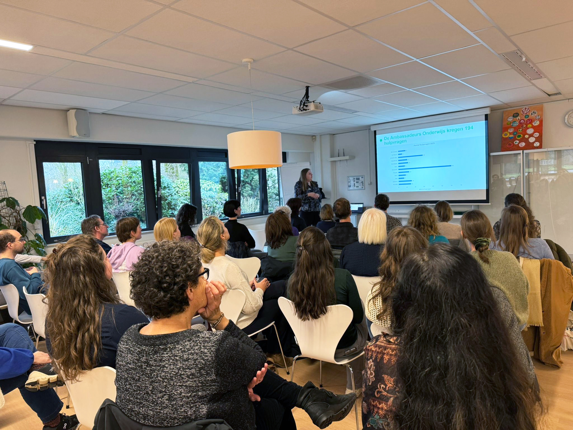 Na een intro door Rosa Lucassen als moderator van de middag was het al snel de beurt aan Daphne, die in haar rol als Netwerkcoördinator Volwassenen de cijfers van afgelopen jaar ingedoken was en daar een inzichtelijke presentatie van gemaakt had. Alle ambassadeurs informele zorg houden gedurende het jaar bij welke hulpvragen ze verwijzen en naar welke organisaties en initiatieven ze dat doen. Ook houden ze bij, bij welke stedelijke en wijkgerichte overleggen ze aanwezig zijn om daar de informele zorg in de volle breedte te vertegenwoordigen. Daphne gaf een toelichting op de cijfers en beantwoorde vragen uit het publiek. Cijfers zeggen niet alles, maar geven wel een duidelijk beeld van de impact die de ambassadeurs en de organisaties en initiatieven in het netwerk samen maken bij het ondersteunen van hulpvragende bewoners. De cijfers lees je terug in deze presentatie.